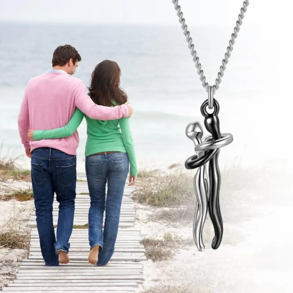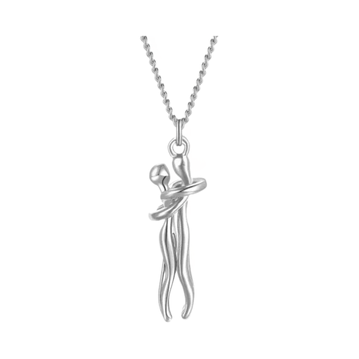 Feiere die innige Verbindung zwischen Partnern mit dieser einzigartigen Halskette, die Liebe und Zusammenhalt in einem stilvollen Umarmungsdesign verkörpert.